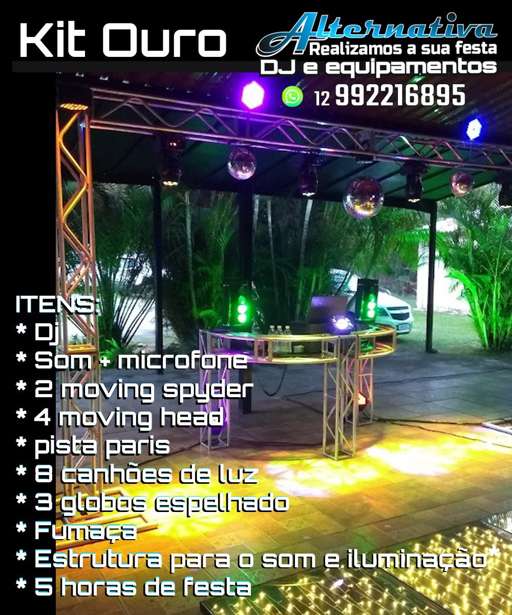 KIT OURO: Dj + som + iluminação + 5 horas de festa.