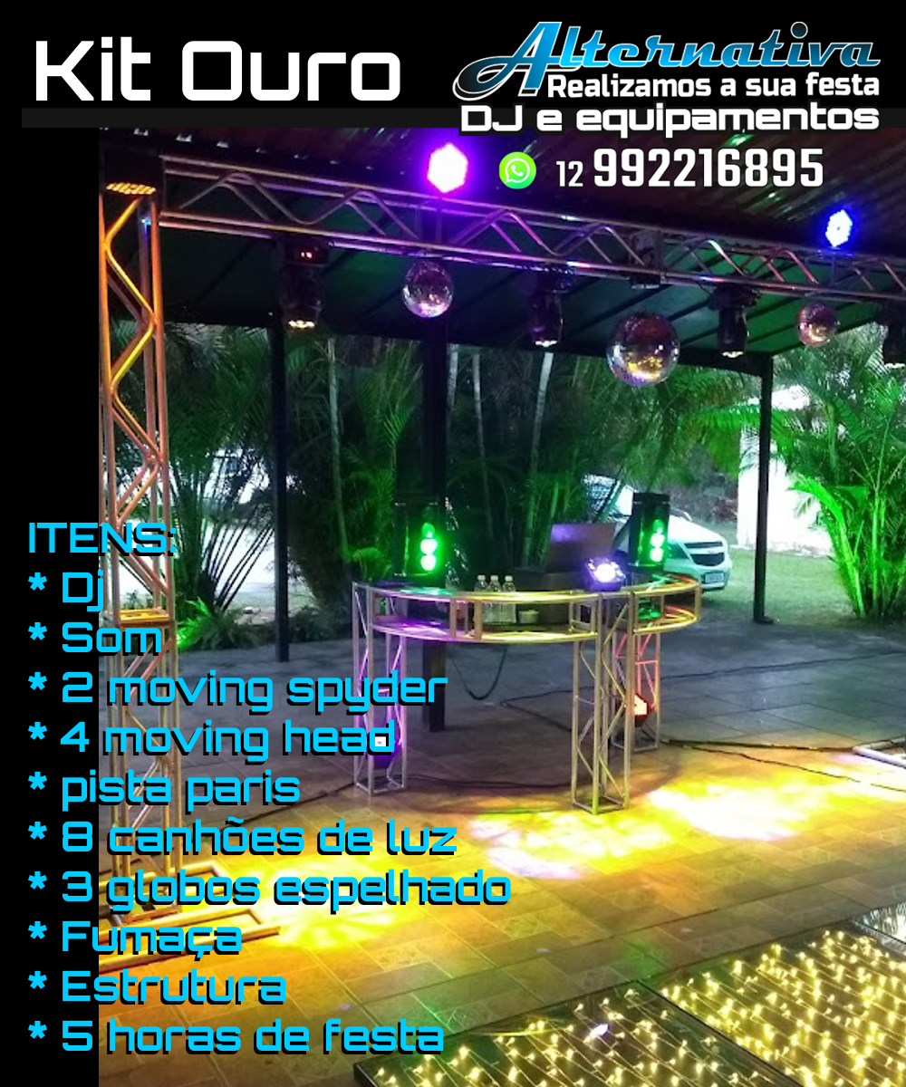 KIT OURO: Dj + som + iluminação + 5 horas de festa.